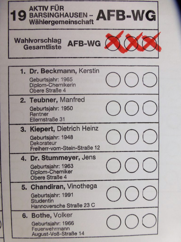 Nicht mehr als drei Stimmen! Der Stimmzettel ist sonst grundsätzlich ungültig.